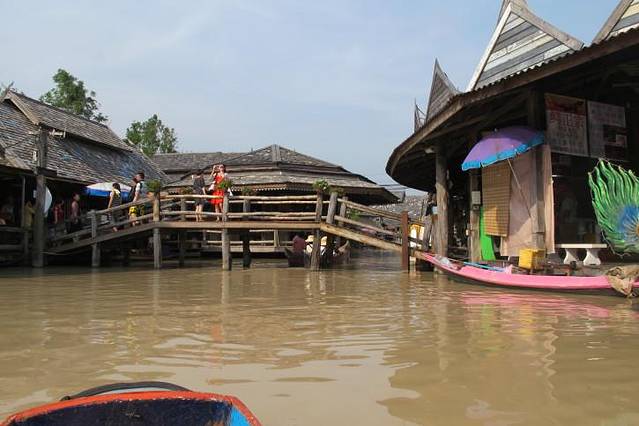 不知四合镇水乡是原汁原味的泰国水上居民生活场景,还是顺应旅游而兴建的观光景区,但不论如何,独特的水上人家,古朴的购物环境,小船摇摇,小河流流,吃着雪糕,听着泰曲,很是令人陶醉忘归。。。。。
