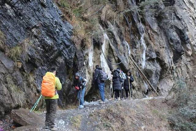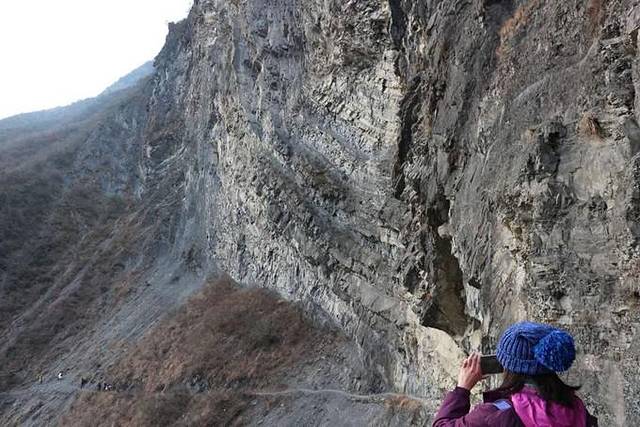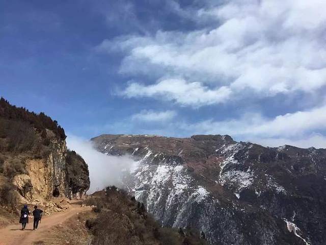18日早上8点半,我们从渔进沟出发,选择了小路上山。路只有几十厘米宽,走一个人刚好,若想两个人并行就会比较危险了。看着一旁的大山和一旁的悬崖,不得不感叹山水之奇美。