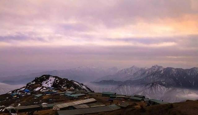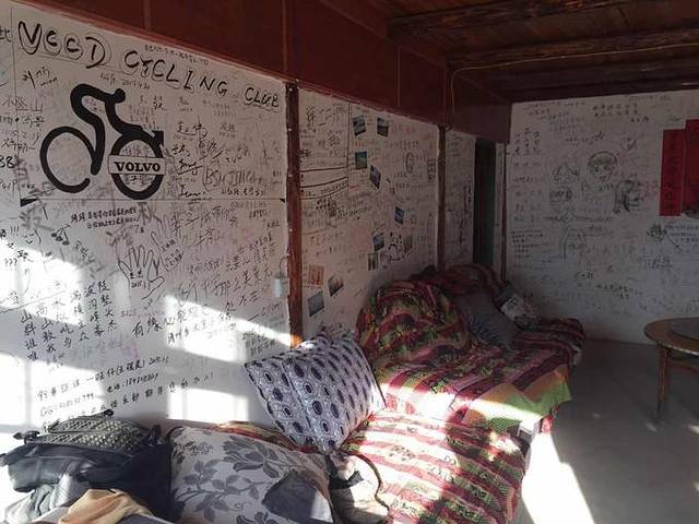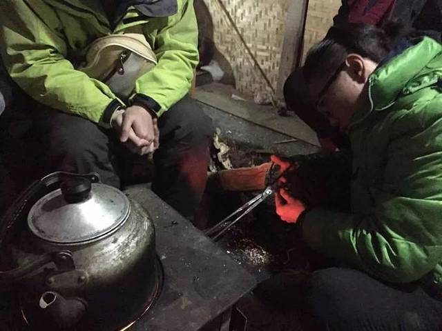 我们住的地方,可以说是客栈,但实际上就是个板房结合各种布和草的简易帐篷,几乎整个山顶的配置都是如此,大家都是大通铺,少有两人的标间,十点左右就会断电,烧水只能靠柴火。尽管条件艰苦,但我们一群娱乐青年最后也找到了玩法,烧起了柴火玩儿喝起了歪嘴儿(一种白酒),最后搞得一屋子都乌烟瘴气。不过不得不佩服,早睡的老板竟然能够在如此呛鼻的柴烟下睡着觉打着鼾,老板娘竟然能够在老板的鼾声与柴烟熏鼻的情况下熟睡得那么安详...