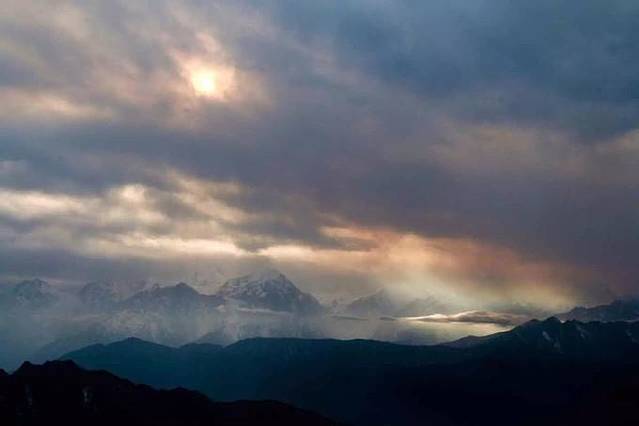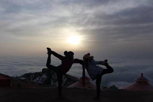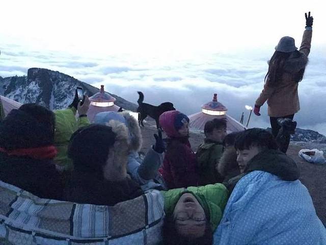 雾很大,过了很久渠儿也没上来,后来才知道是雾太大让他已经找不着回去的路了,才耽误了时间。他回来后,我们五个人一人裹一床被子,在地上铺着毯子,围坐在一起,也是幸福感爆棚。