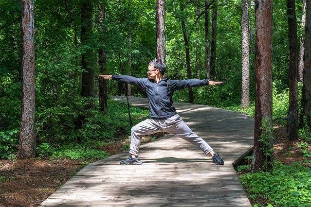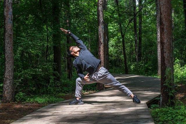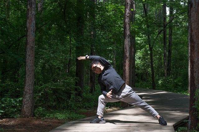 热爱瑜伽的小灰灰树林里练了起来,正好是世界瑜伽日,好应景。