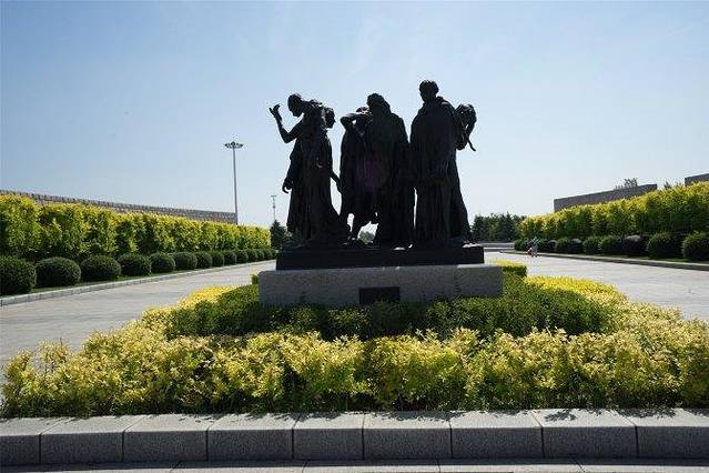 坐着景区电瓶车,可以一路听导游的讲解。有的雕塑很具体,有的雕塑很抽象,都是围绕着公园内的“和平,友好,春天"这三个主题而塑造而成的。下面的这个作品是土耳其的雕塑家的作品,主题是等待。