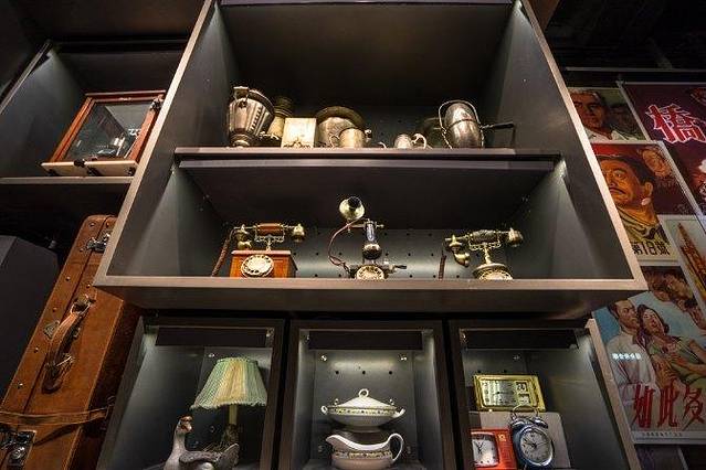 还有一个展馆是展示的拍摄电影的物品的,都是很有时代气息的东西。像缝纫机啊,杜十娘的百宝箱,民国时期的电话等等。