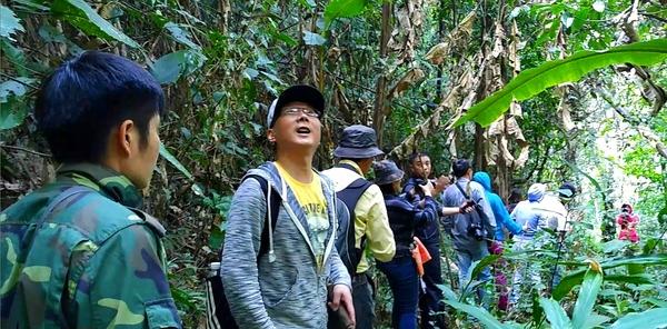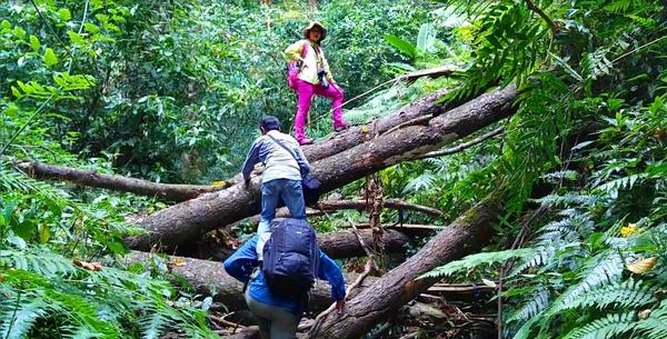 皮卡车把我们送到车能到达的地方,在颠簸中大家欢乐在漫延,完全不知道往下旅程的艰辛。直到走进丛林,路是愈走愈艰难,到最后连路也没有了。领队看出我们面上的难色,一路上给我们普及丛林知识。