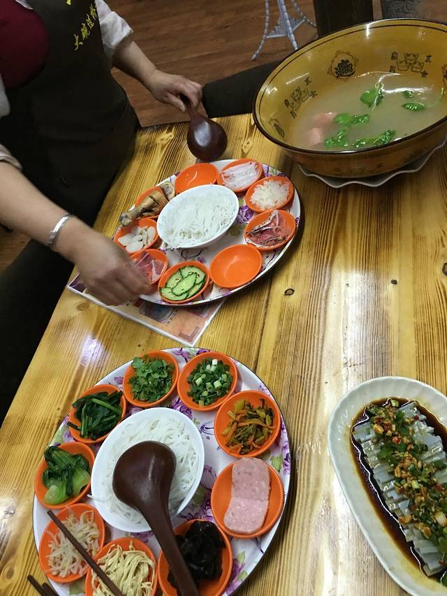 破酥粑粑 喜洲粑粑 烤乳扇 烤饵块 黑山羊火锅,腊排骨煲,鸡肉过桥米线 石屏烧豆腐 三文鱼