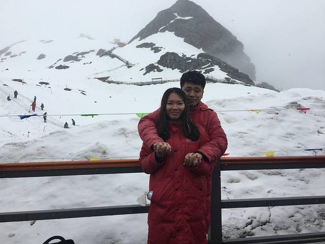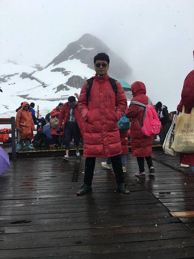 我们上玉龙雪山的时候下面下很大的雨 上了索道 上面就下了很大的雪很激动