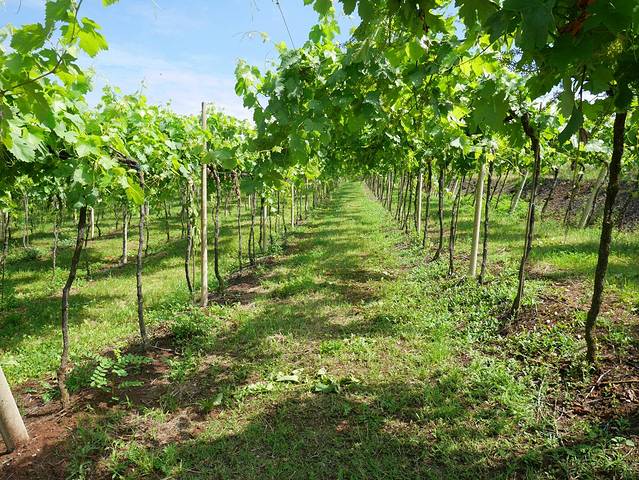要用什么文字与意大利搭配起来最贴切,当然就是美食美酒了。来意大利怎么能少得了品品葡萄酒呢,下面这一大片21公顷的葡萄庄园放眼望去,郁郁葱葱,但是葡萄还没有到成熟的季节,要等到9月份左右。