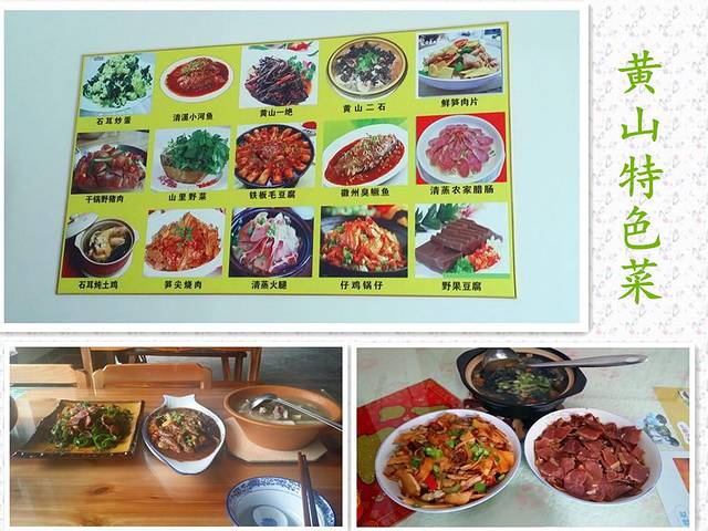 铁板毛豆腐,清溪小河鱼,黄山二石,清蒸火腿,鲜笋肉片。