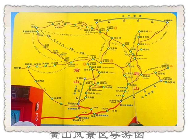 到达黄山风景区门票站,观看导游图,选择好路线后。