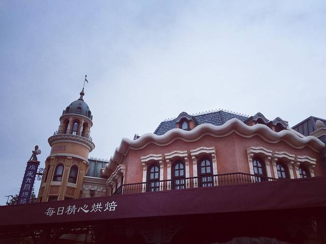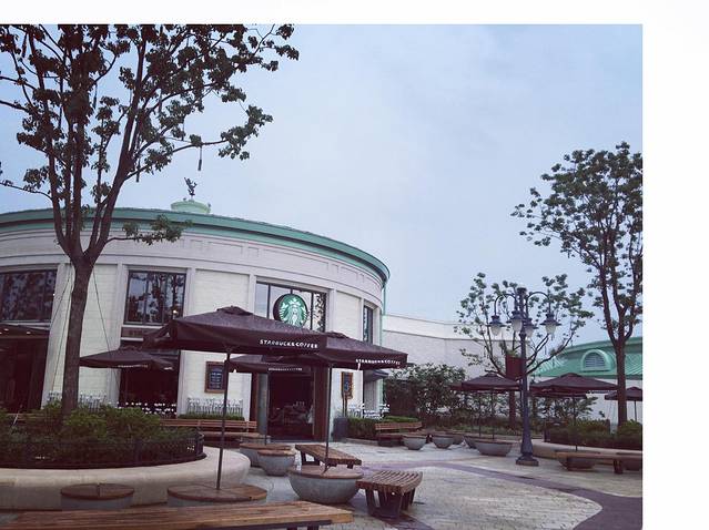 高桥下来就可以看到星巴克和迪士尼小镇