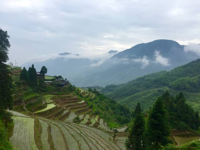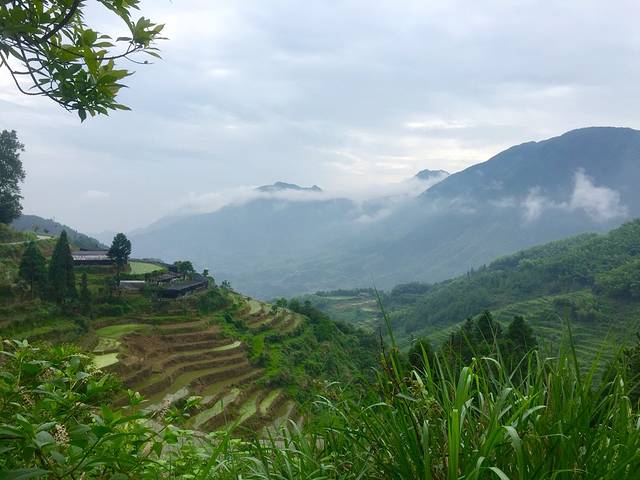 整顿完毕后我们就沿着游步道上山向七星墩进发,我们大概是四点多出发,一路下来有瀑布、竹林、野花相伴,风景异常美丽,这样走走停停,大概用了两个多小时才到七星墩。七星墩的梯田已经过了灌水期,绿油油的一片。下山加快脚程,一个小时返回,然后大部队便在我房间外的院里,开了一桌,喝着啤酒,吃着农家菜,看着满天星斗,听着溪水潺潺、蛙声阵阵。