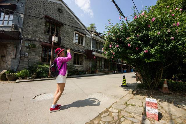 景区是要原入口返程的,所以我进去时是沿着古街逛的,出来时是沿着湖一路走过来的,因为古街有个弄堂处都有台阶可以下到湖边,湖边风景极美。非常推荐。