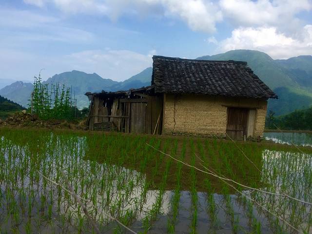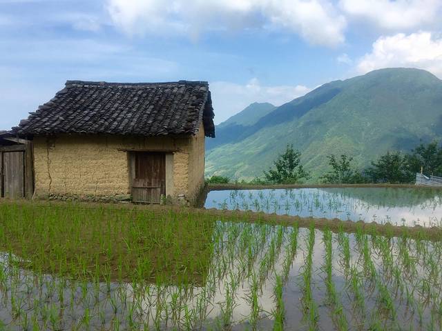 最高处的七星墩(海拔约1100米)则有云和梯田最壮观开阔的景象,我们是下午先到白银谷的根坑石寨,寨子已经有些年头了,有一些黄色的石头砌的老房子,这里有很多农家乐可以住宿,但住宿条件不一,每户人家的房间有限,因此,我们一行人是分了好几个农家住宿的,我运气较好,分到了一个就在瀑布边的房间,躺在床上就能看见瀑布。
