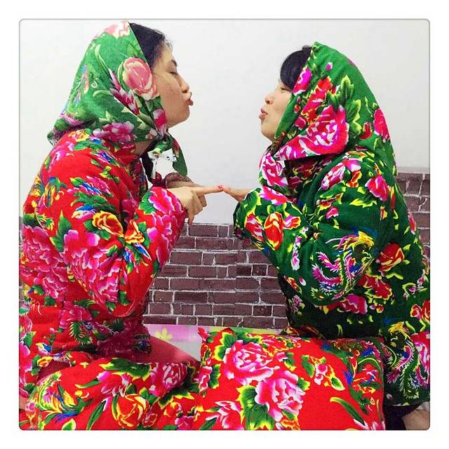 待到夜深人静的时候,不安份的两个女神经抓起两套翠花服往身上套