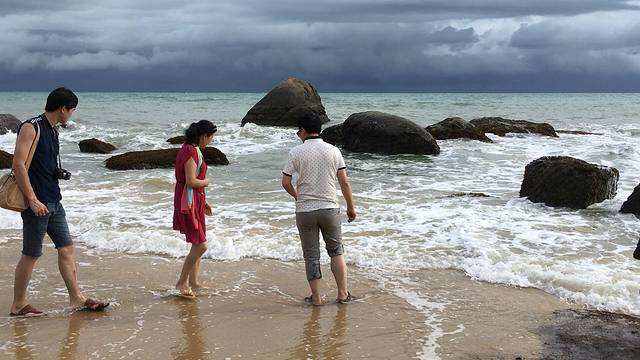 我团在这里的时间1小时,只能站在海边看她们玩