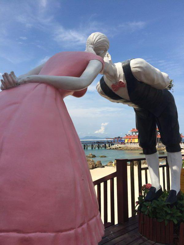 这个小岛是封闭式的,上岛需要有入住短信或者房卡才可以乘坐岛内专门的电瓶观光车入岛,坐着电瓶车,吹着海风,尽收眼底那一片蓝盈盈的海,这是我对大海的第一印象。美极了。