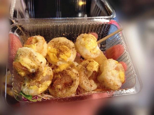庙口夜市比想象中的要小,只有一条短街,味道呢在各夜市中也不算拔尖的,但是因为近海,所以沾上了浓浓的海味。不过这里有几个特色。我最喜欢的自然是小香肠,但仅仅是出于个人对肠类的热爱。其次这里最最有名的就是营养三明治了。大概进入夜市2/3的街区就能看到,人多的需要拿号至少排20分钟的队。但对我来说,这个充其量就是分量很大的热狗罢了。另外,天妇罗,烤鱼片都不错。在夜市街上,可以看到很多拿着一种杯子装刨冰的,这也是我在庙口最喜欢的食物之一了,大大的一杯,量很足,味道清爽,价钱也很实惠。