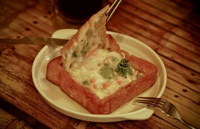 其实就是吐司外皮烤得很脆很焦后,填上丰富的馅料,有很多口味可供选择。黑胡椒牛肉,奥尔良烤鸡都不错。