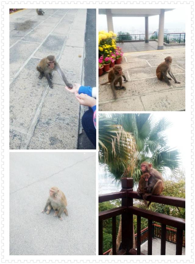 稍微休息了一下,吃个午饭,我们就出发去鹿回头公园了。我们一边玩闹一边到了山顶。等夜幕降临的同时,我们在山顶和公园里猴子一起玩耍。