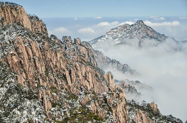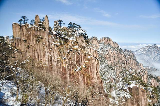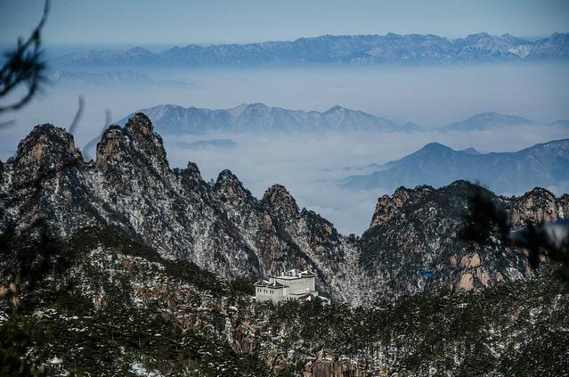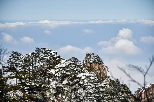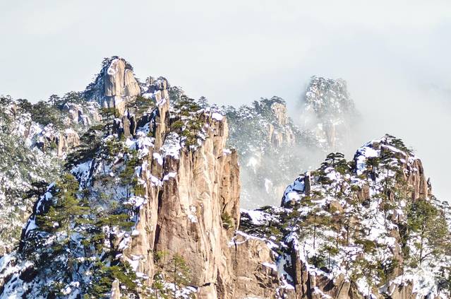 冬季:光明顶(炼丹峰)、始信峰(含蘑菇亭)、白鹅山庄。