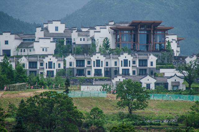 而远处的这座大楼就是鼎鼎大名的黄山悦榕庄酒店,非常的高逼格,它能够选择卢村,就足以证明这里的生态环境与自然风光,还有就是卢村具备的特色是悦榕庄所想要的呢。