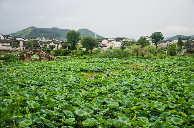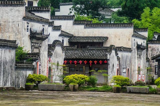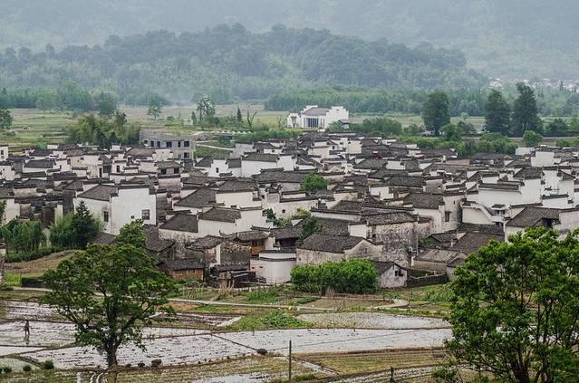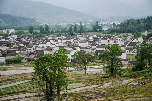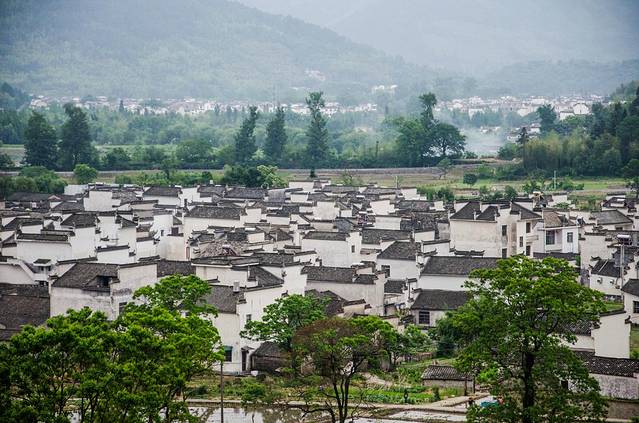春末夏初时则是应是绿肥红瘦之季,这里的翠绿色的树木与黑白分明的房舍形成了独特的皖南古村落景致。