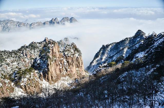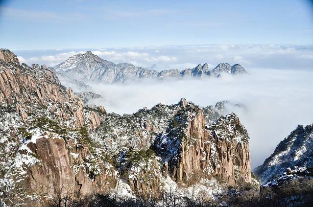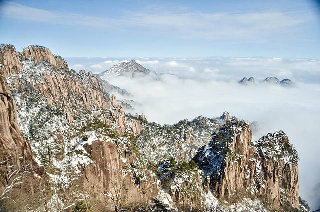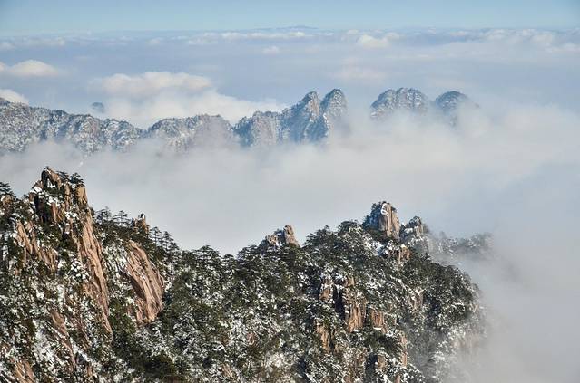 冬日里黄山山顶之上的雪晴。此景应是天上有,人间能有几处多?