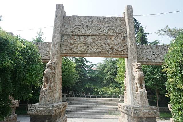 下火车车后,坐公交车半个小时就到了衡王府石坊。石坊是开放式景区,其实里面仅存石坊,别无他物。明朝青州城内的衡王府,在古典名著《红楼梦》、《聊斋志异》中都曾出现过他的鼎鼎大名。如今,这座规模宏大的建筑群早已荡然无存。只有从这仅剩的石坊上还依稀可以想见王府曾经的富丽堂皇。衡王佑楎,明宪宗第七子。成化二十三年(公元前487年)被册封为衡王。弘治十二年(公元1499),衡王就藩青州,大兴土木,建造了衡王府第。衡王共传了六世七王。