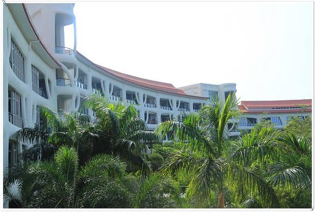 珊瑚酒店是蜈支洲岛上唯一的酒店,酒店从空中看像支珊瑚的形状,在蜈支洲的海岸边伸展开来。