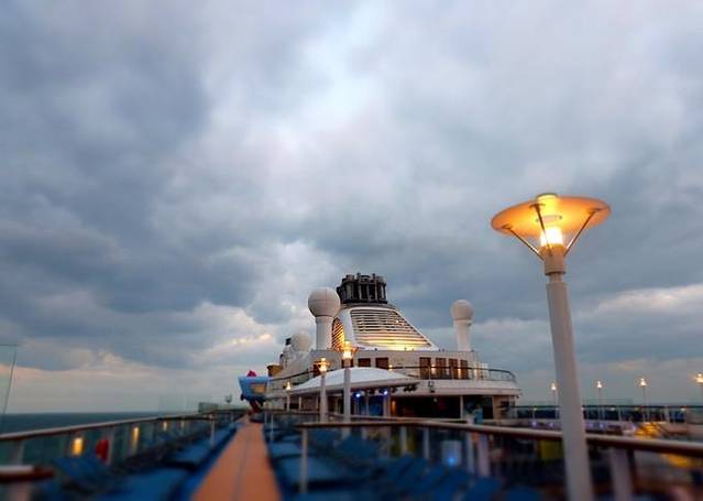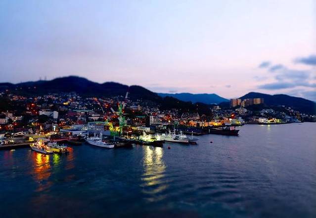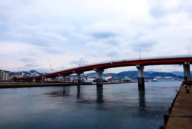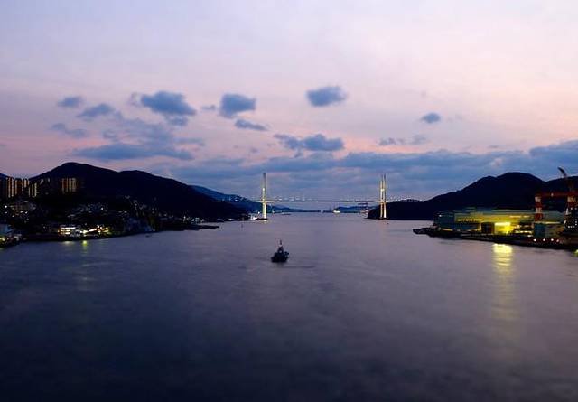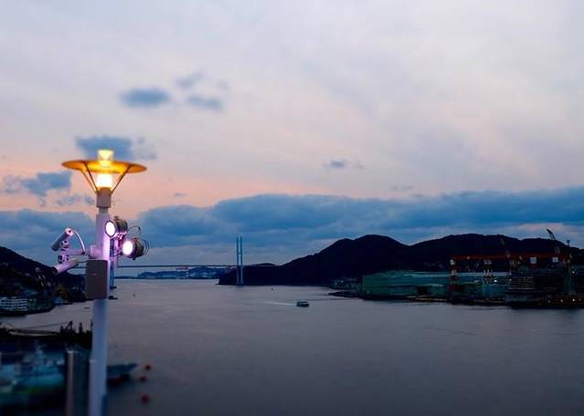 我背上相机在甲板上晃荡,等长崎的日落。越夜越冷,船也缓缓驶出长崎港,准备返程。甲板上的风不是一般的大,也没什么人。长崎的天空依旧是乌云遮日,拍不到什么景色,正准备回房休息,一个春秋旅行的小姑娘带着几个应该是她团友朝这边走过来,就聊了两句。小姑娘说长崎的夜景非常有名,曾被评为世界三大夜景之一,当亚洲最大邮轮🚢穿过长崎女神大桥的时候,很多人都会过来驻足拍照。