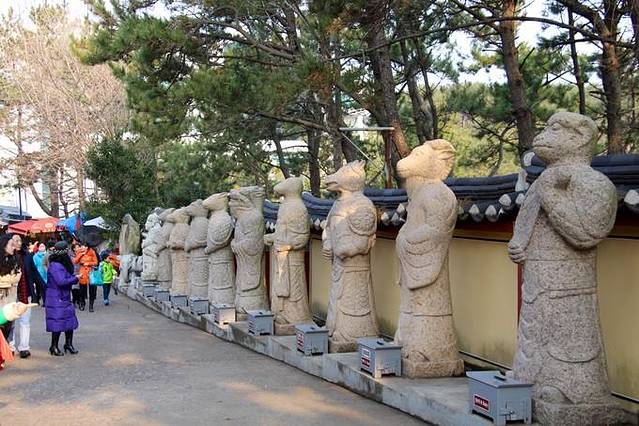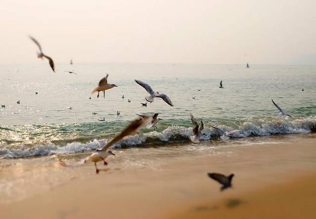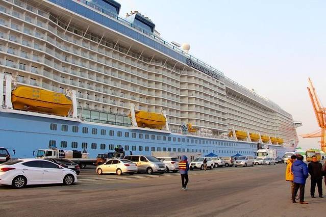 釜山是船下日程的第一站,一早起来拉开窗帘船早已到港靠岸。我们的房间靠港口这边,从阳台往下一望,哇塞,百余辆大巴车已经整装待发,老爸还很搞笑的数了一遍,真的🈶️一百辆车,在韩国人眼里应该就是一百多车的移动银行吧。作为红薯饭,一提到釜山,就不自觉的想到海云台和那些鸽子,虽然冬天的海云台看上去略萧瑟,但有很多年轻人在喂鸽子,还有赤脚逐海浪的少年,简直是经典保留项目呐。不过夏天作为当地人的海水浴场,应该有更多风情。