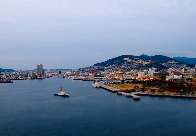 夜幕降临,女神大桥亮起灯光,远方两岸山峦上万家灯火,近处港口船只闪耀光芒。原本安静清新的长崎突然变得活力四射,光芒万丈,亦静亦动。