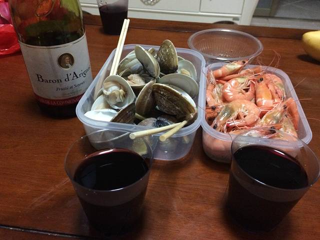 下午自己买材料放在冰箱,带了瓶酒,跟表妹一起宵夜