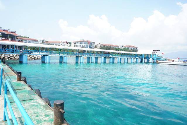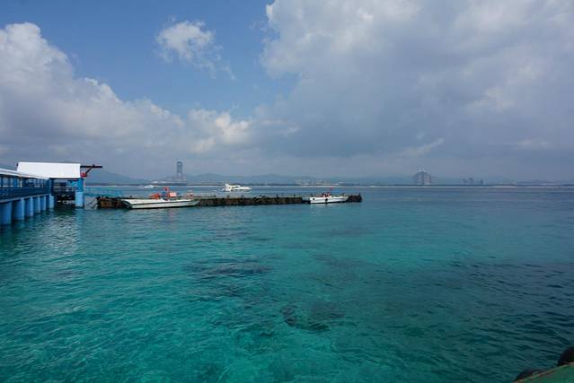 第三天我们去了蜈支洲岛,早上8点半大巴车来酒店门口接,不过大家要注意下哦,即便在一趟大巴车上跟团的费用都是不一样的,普通的门票加船票从138到198收费标准的都有,报名的地方不同价格会有所偏差,但是享受的服务却是一样的,所以在抱团前一定要再三比较找最实惠的哦。