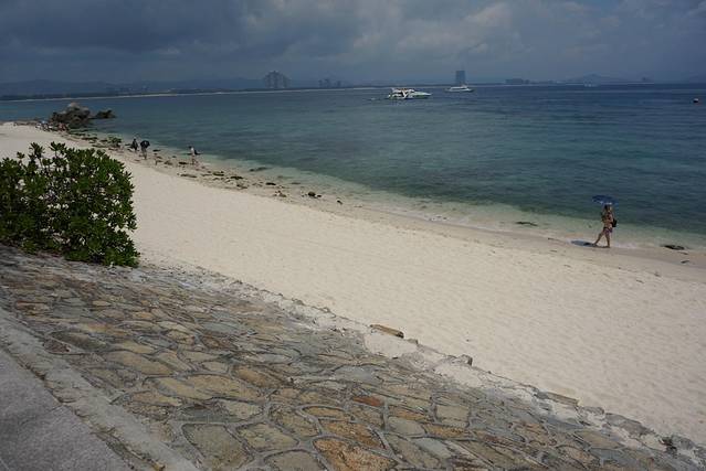 没来这里前我一直在脑海里描绘这里的景色,蔚蓝的大海,洁白的沙滩,暖暖的阳光,清凉的海风和高大的椰子树。来到这里我发现,我猜对了前两个场景却猜错了后面的场景,哪里有暖暖的阳光清凉的海风。。我压根不敢脱掉帽子和太阳镜,还穿着防晒衣,反正就是把自己包裹的严严实实。不过毒辣的太阳依旧不能阻挡我一颗拍照的心。