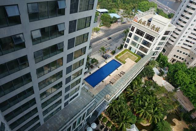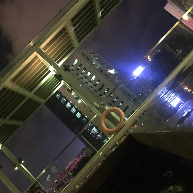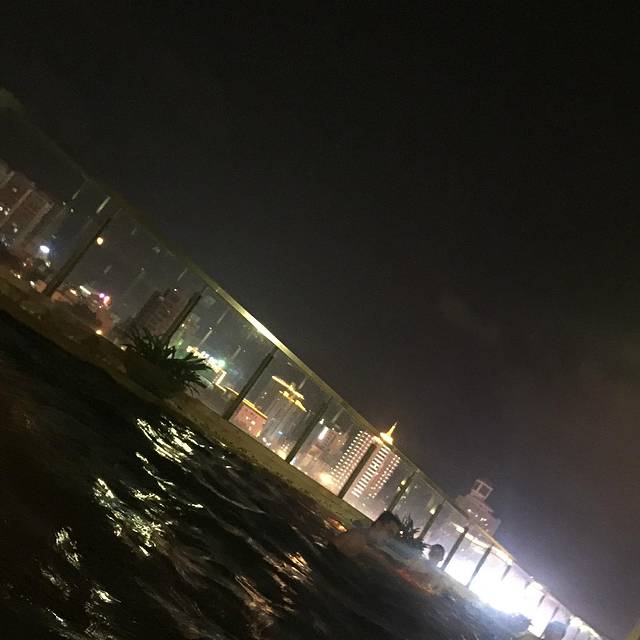 天台泳池,水质很好,我们是晚上吃完饭回来游泳的,可以看到夜景