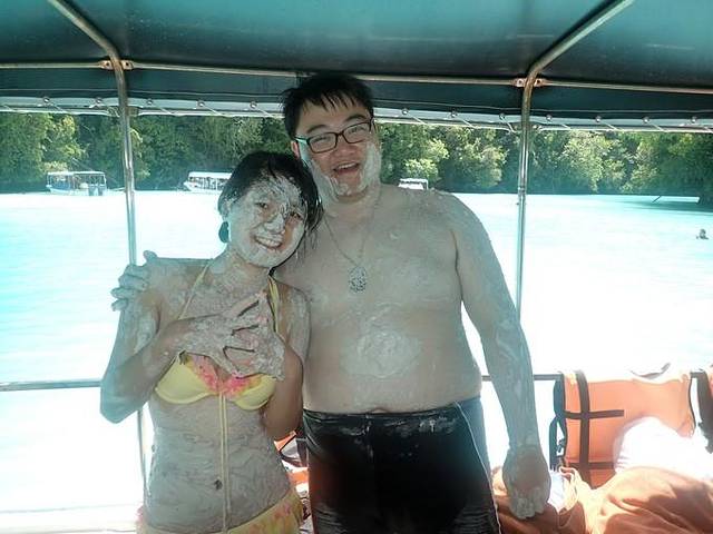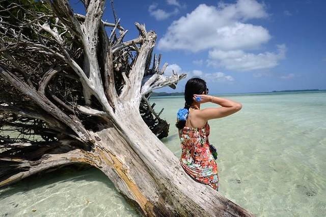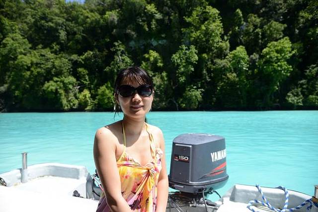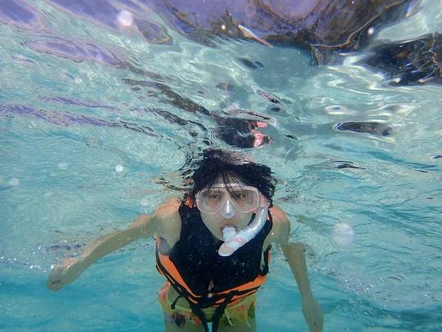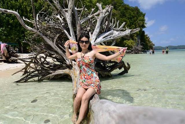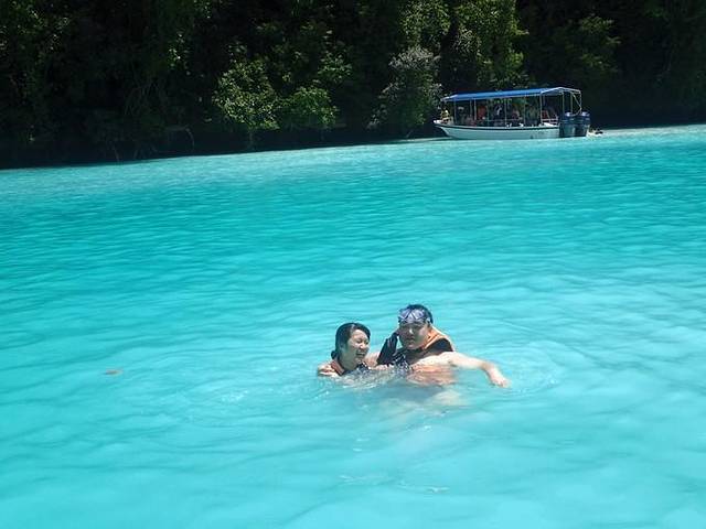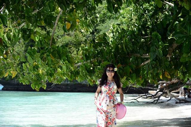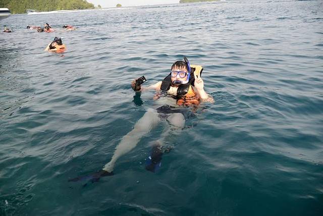 来到中午吃饭休息的无人岛,andy在简单教了一下浮潜要领并带领第一次浮潜的团友尝试了一遍之后就忙着去做饭了,于是我们有了半个小时的练习浮潜时间~我媳妇儿就是个怕水的人,这次带她来帕劳,从死活不下水,到浅水区勉强浮潜,再到抓着浮板敢跟着潜导一起在水里看十几二十分钟,真是进步很大!