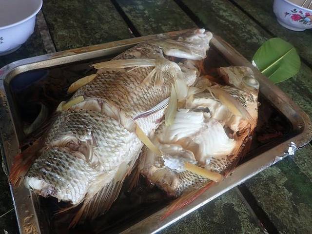 渔获大展示~~最边上那条大鱼钓上来的时候其实是通体泛着银光的,但是慢慢就变色了,右边的那两条钓上来也变色了~~为了客观的表现出渔获的size,我们借用了一个喝水的杯子和美女的一只脚丫子