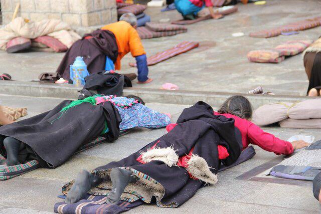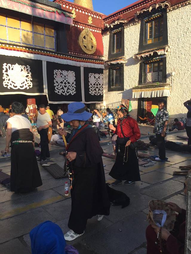 这里的藏民心里有很高的一种信仰、感觉她们不是在祈祷什么、叩长头是她们每天必做的事情、也许是文成公主的原因,让更多的人来表达心中的情怀和感恩。我想,只要来西藏拉萨的人,他们一定会到大昭寺门前来坐坐,那怕只是一瞬间的功夫,他们也会很虔诚地来,很感恩地走。