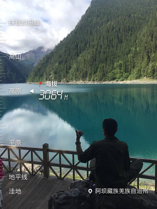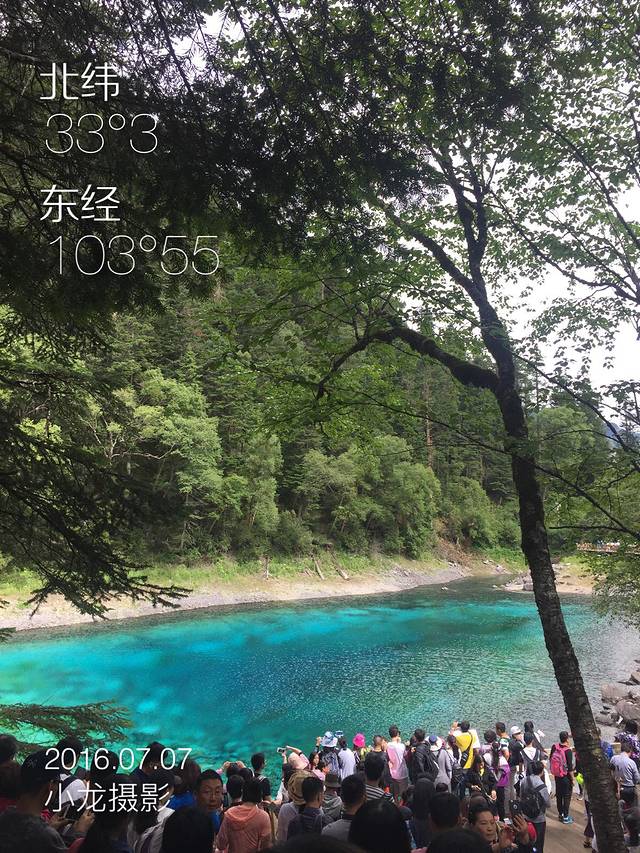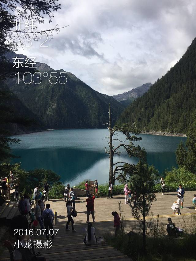 长海是九寨沟最大的湖、深不可测、远处观看就像一个巨大的蓝宝石、在阳光的照射下闪闪发光、这张照片是我让一个大叔照的、没照出那个效果、不过还是会谢谢他帮我拍照!