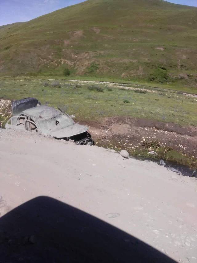 没拍清楚、可能是进藏的车出现事故抛弃在路边了……、可想而知进藏真是个不容易的事情、祝福自己吧👋