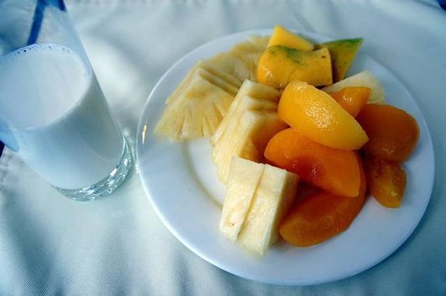 都不合我胃口,最后只得拿了一大盘水果,配着热牛奶完成早餐仪式