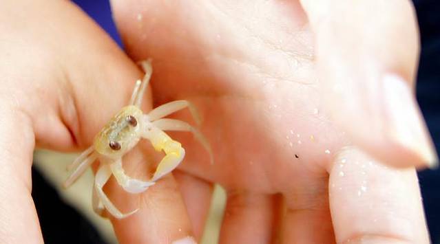 鸿私人沙滩的管理员送我的小螃蟹,是个抓螃蟹能手,一会一个,一共送我了5只。