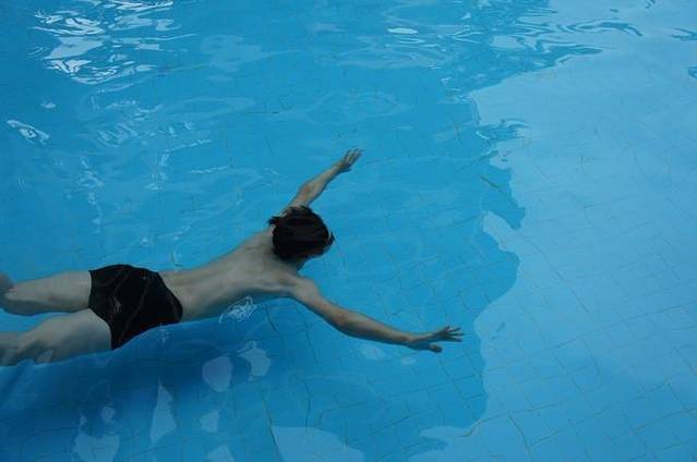 男友不惧水温,直接跳进泳池,我在上面看着都冷