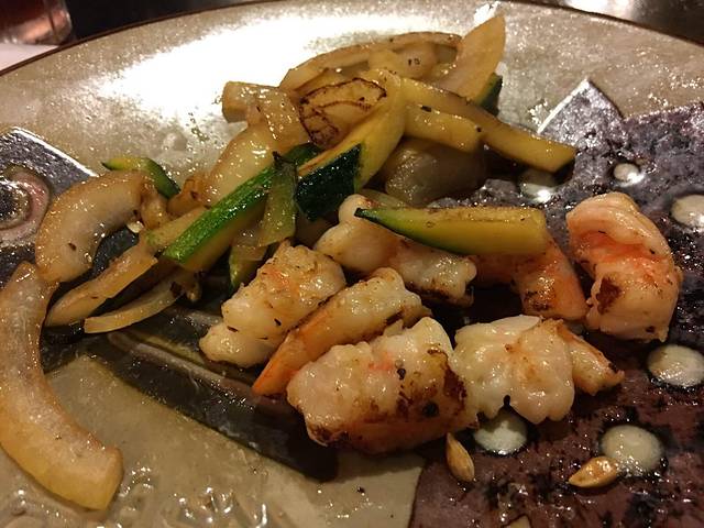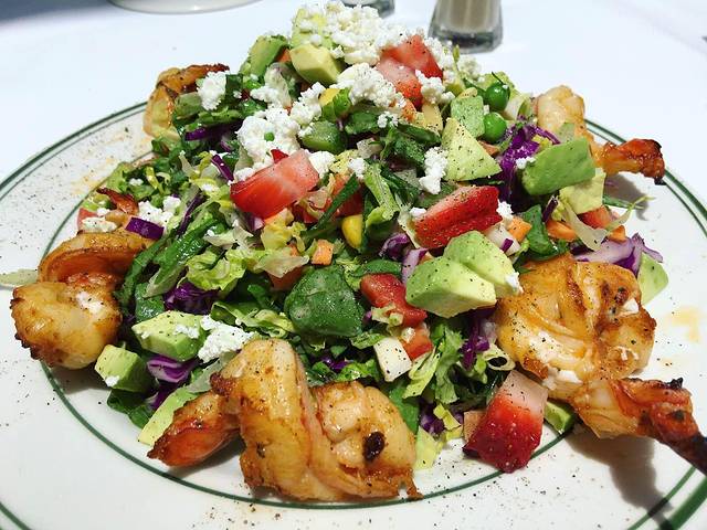 不知道中文怎么翻译比较确切,还是看结账单的英文吧,这个是Tropical Chopped Salad,额外加了虾。以为虾是冰鲜那种,没想到上来后是烤虾,做得特别入味儿。