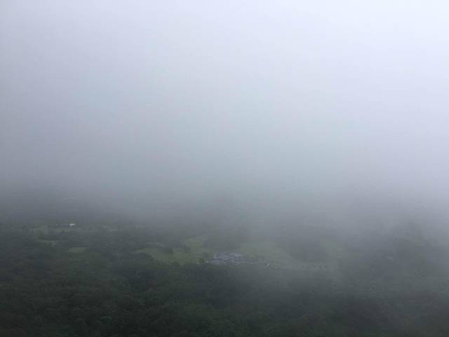 登上观景台,虽然大风呼呼,但眼前的浓重水雾仍然遮挡了山下美景。