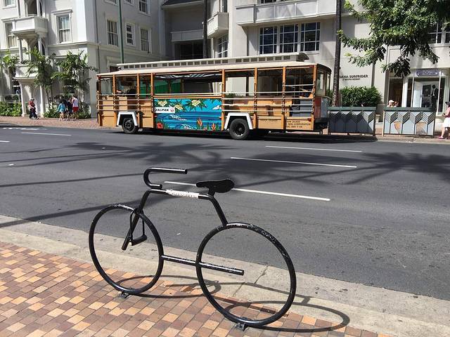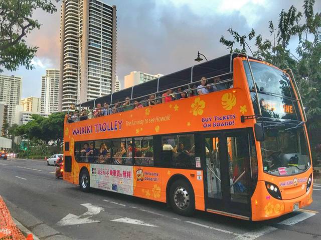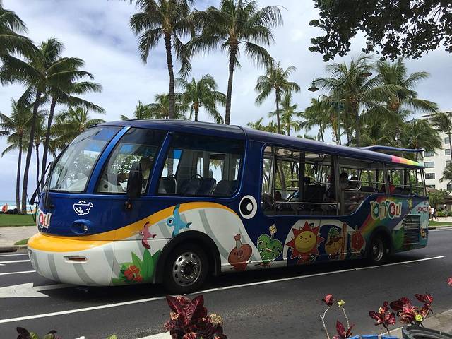 形形色色的观光车,夏威夷大街上一道亮丽的风景线。