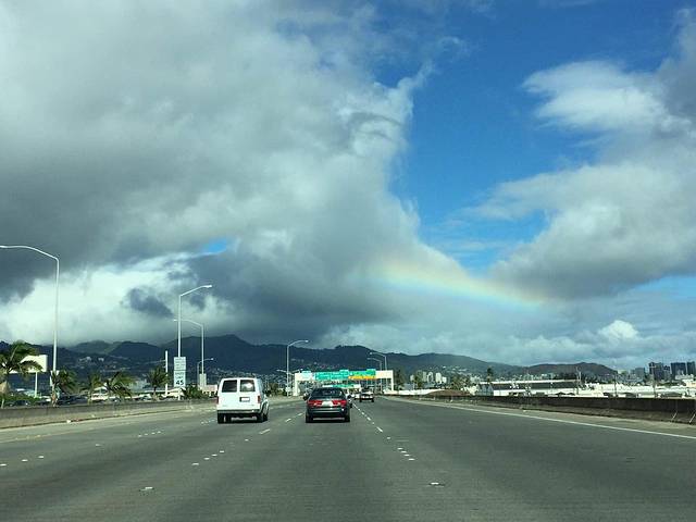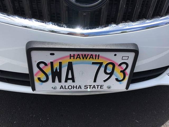 夏威夷,又有“彩虹之都”之称,连这里的车牌子都以彩虹为背景。