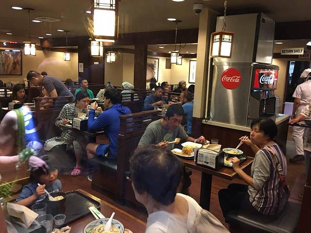 每天早中晚都如此火爆的丸龟制面,乌冬现场手工制作,劲道看得见,汤料浓郁甜香,油炸的各种小吃也酥脆可口。价格按照这边的比例来说算是很公道啦!吃完十点多出来外面还是排着长龙。听朋友说北京也有,一般般吧,我想说,食材很关键。