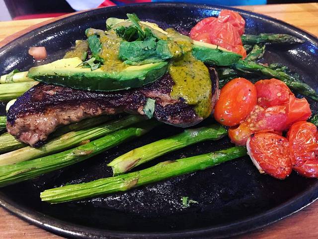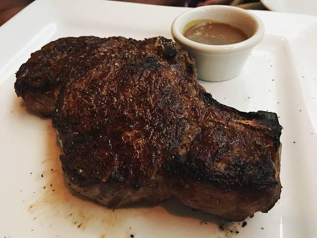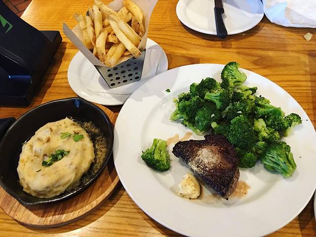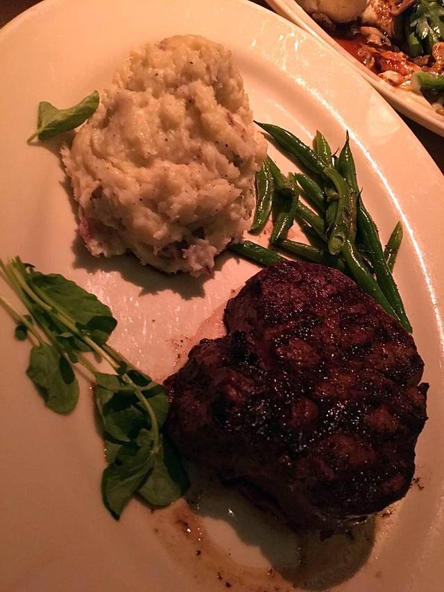 魔术结束后,晚餐没吃上最最牛的Wolfgang’s steak,都九点多了,还要等位两个小时,果断放弃。去Cheesecake Factory打包了原味芝士蛋糕当做餐后甜点,找了附近这家亚特兰蒂斯牛排,也很不错。